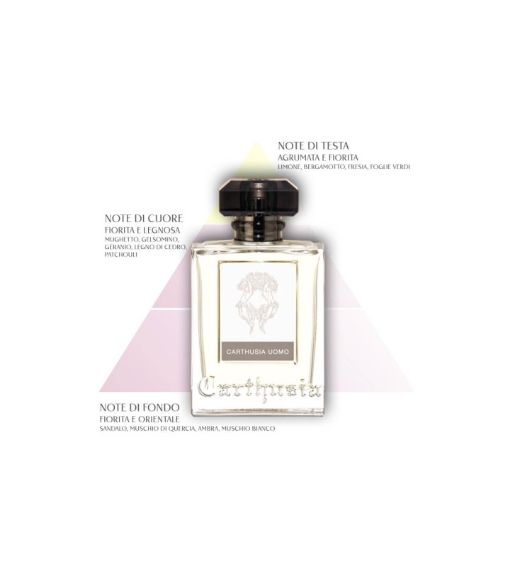Dedicato ad un uomo che detesta eccedere e adora affascinare, Carthusia Uomo è un profumo fresco ed elegante cha sa di buono, di mare aperto, di frutta fresca, di buon cuoio russo e di ottimo cachemire appena filato. Un profumo perfetto e gentile dedicato ad un uomo dallo stile amabile e discreto.